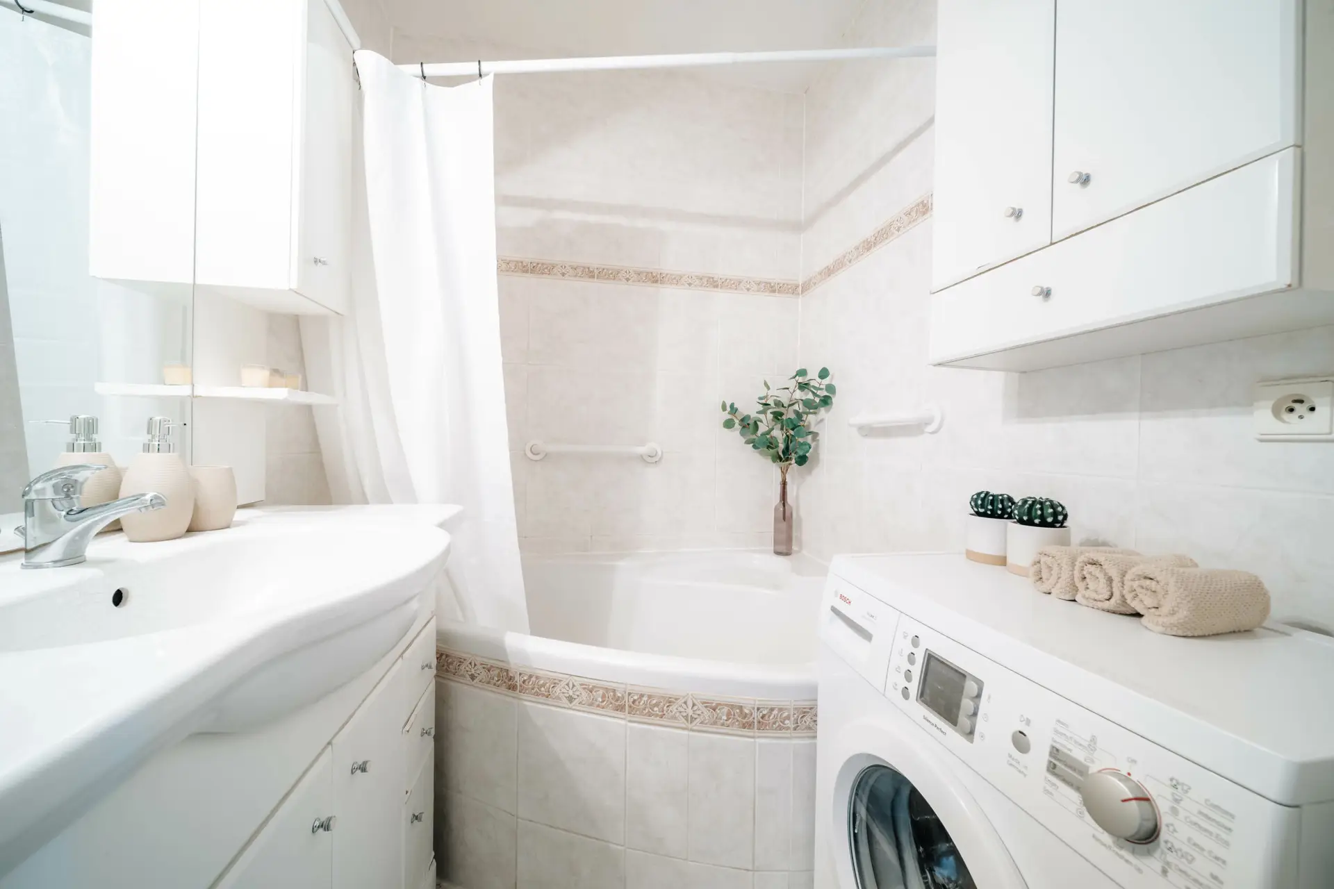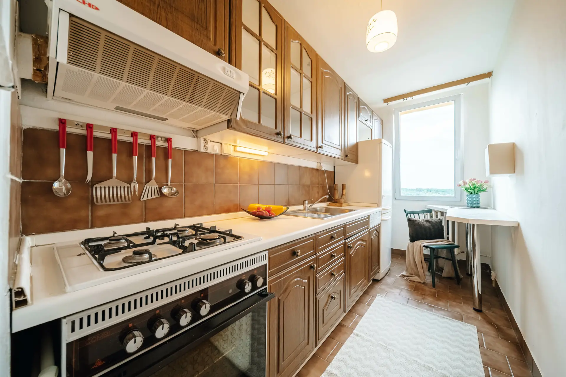 V bytě proběhly následující úpravy: vystěhování přebytečného nábytku, obnovení kuchyně a spár koupelny, kompletní výmalba a opravy stěn, přemalování starého nábytku